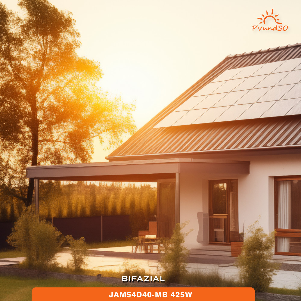 Die JA Solar JAM54D40-LB Module nutzen bifaziale Technologie und erzeugen auch von der Rückseite Strom. Durch reflektiertes Licht von hellen Dachflächen oder Schnee können Sie zusätzliche Erträge von bis zu 30% erzielen. Mit einem Wirkungsgrad von 22,3% gehören diese Module zu den effizientesten am Markt.