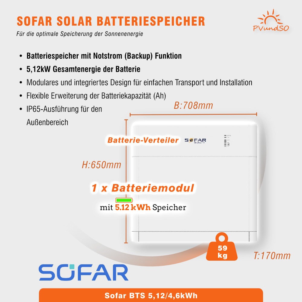 1 × Batteriespeicher Sofar BTS 5,12 kWh (BTS 5K-BDU + 1x BTS 5K Batteriemodul)