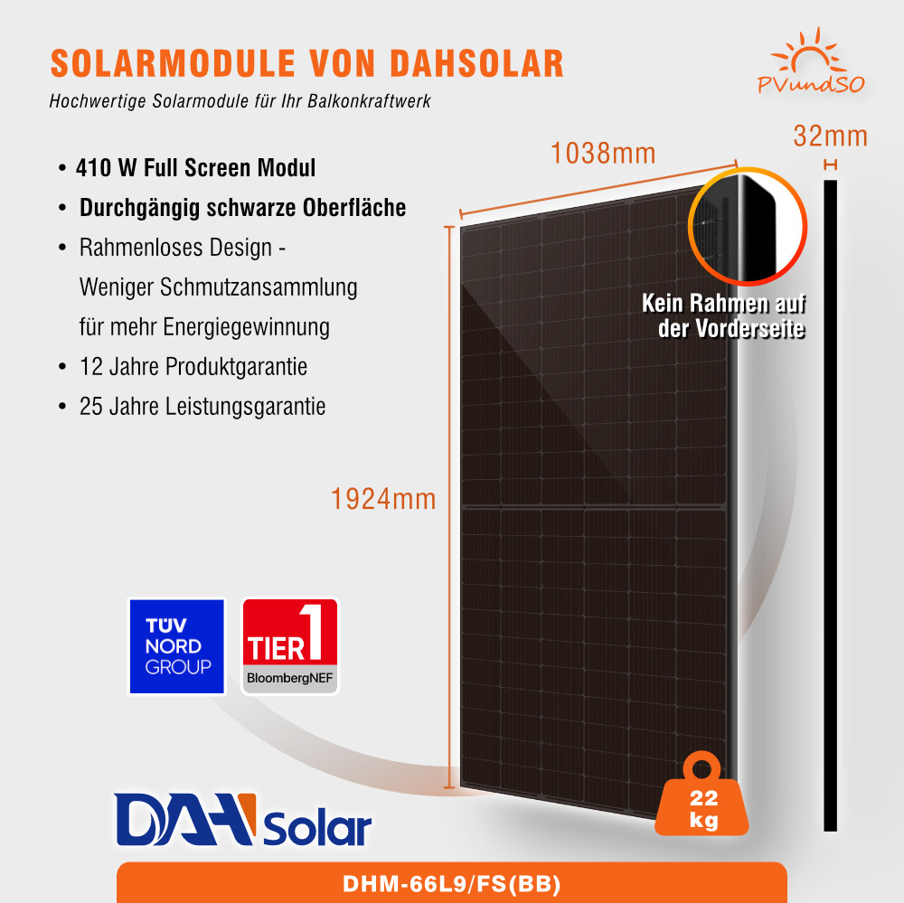 ► ⌈ (4 Stück) DHM-66L9/FS(BB) 410W Solarmodule von DAHSolar ⌋