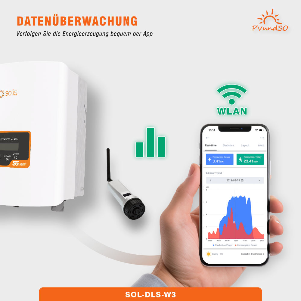 Dank des beigelegten WLAN-Sticks können Sie Ihre Stromerzeugung bequem per Smartphone oder Computer über die kostenlose Solis-Cloud überwachen. Investieren Sie jetzt in erneuerbare Energie, reduzieren Sie Ihre Stromrechnung und erhöhen Sie Ihre Unabhängigkeit für eine nachhaltigere Zukunft.