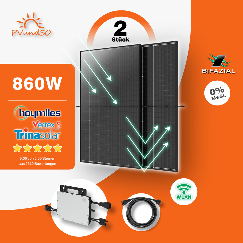 860W Bifaziales Balkonkraftwerk mit Hoymiles HMS-800W-2T Microwechselrichter