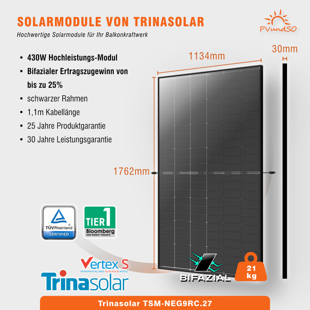 - Zertifizierte Sicherheit: Die Module sind durch den TÜV Süd und TÜV Rheinland geprüft und erfüllen alle aktuellen Normen.