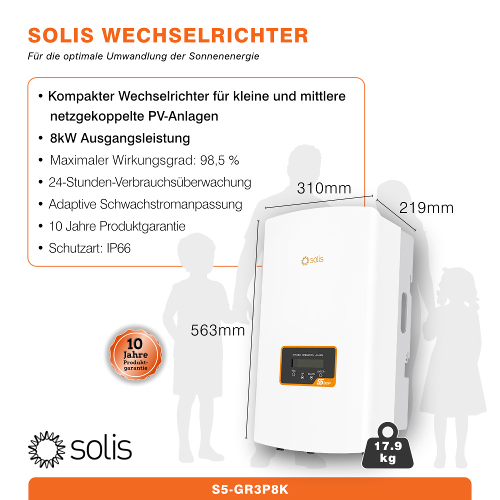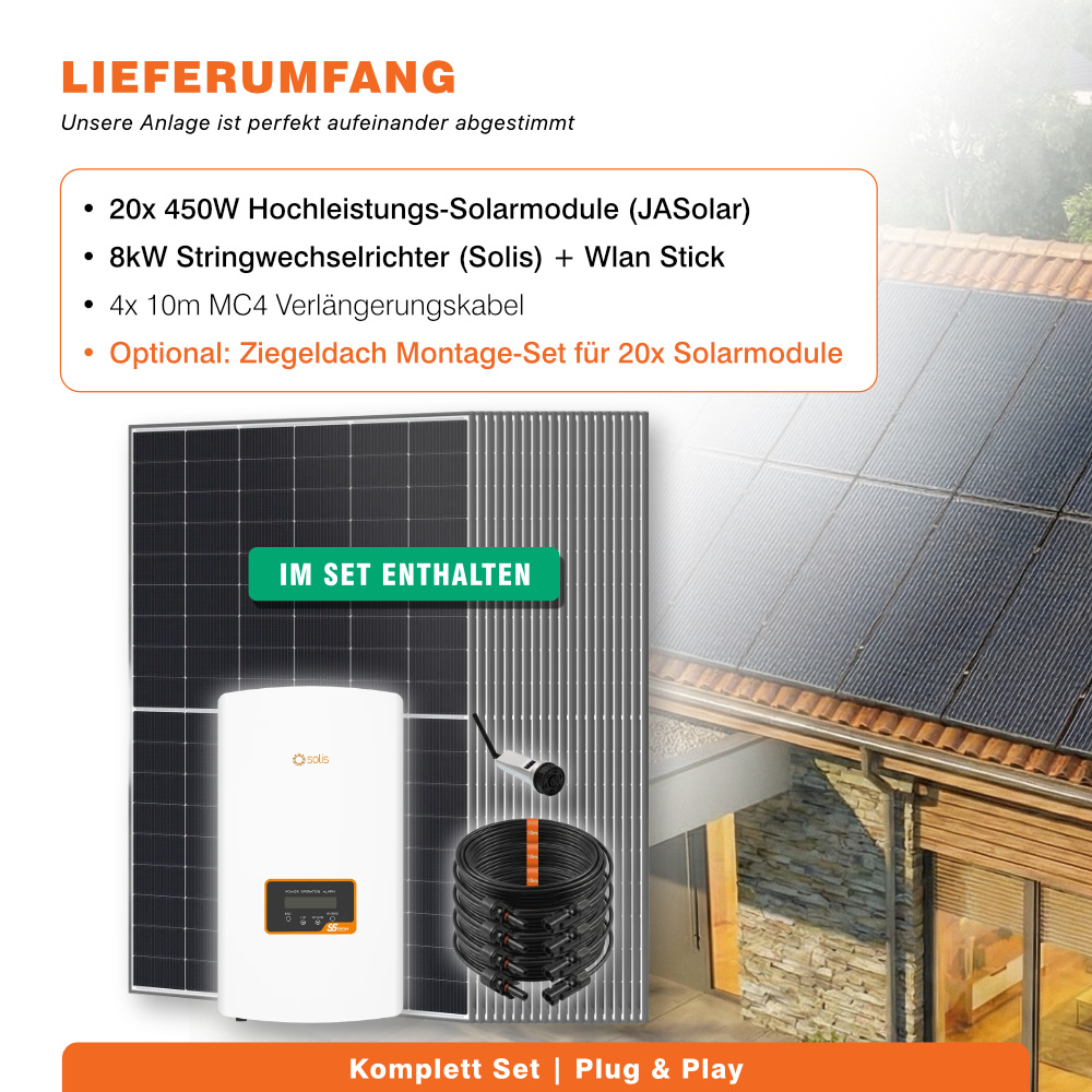 8kW Solaranlage | Solis Wechselrichter inkl. WLAN-Stick & 20x 450W JA Solar Module