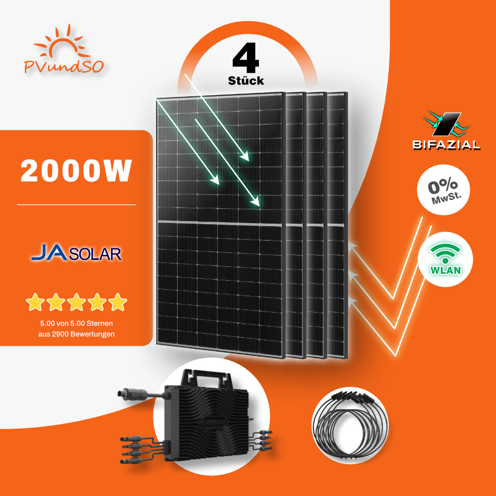 2000W Balkonkraftwerk mit 4 bifazialen Solarmodulen