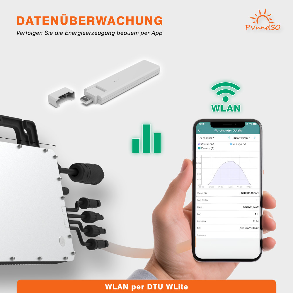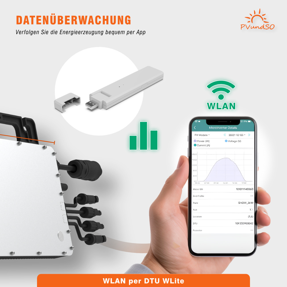 Beobachten Sie Ihre Stromerzeugung bequem über Ihr Handy. Mit der DTU-WLite können Sie Leistungsdaten abrufen und Einstellungen anpassen – für volle Kontrolle und effiziente Nutzung.