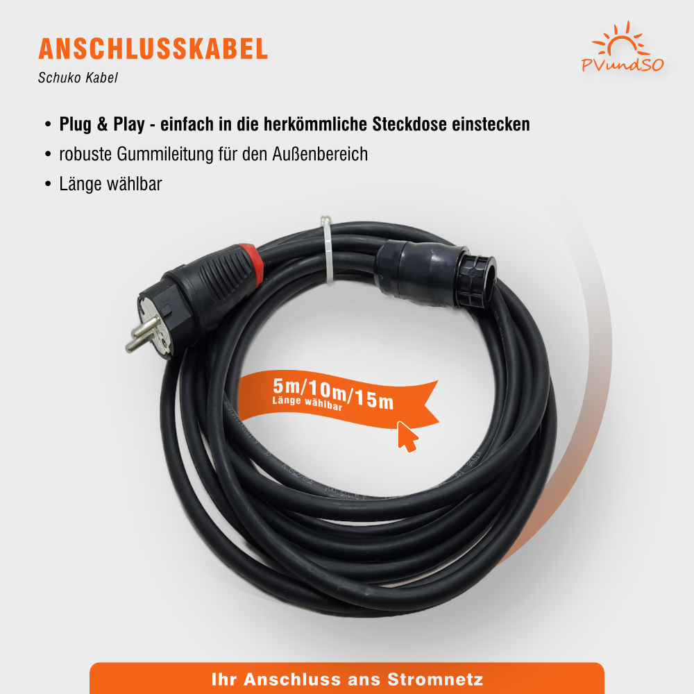 Das Set enthält bereits 4x 2m MC4-Verlängerungskabel. Wenn Sie die Module in einer Reihe platzieren und den Wechselrichter mittig zwischen den Modulen, benötigen Sie keine weiteren MC4-Verlängerungskabel.