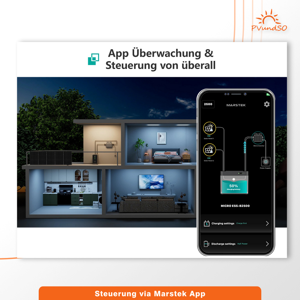 - Einfache Installation: Dank der benutzerfreundlichen Plug-and-Play-Technologie ist der Marstek B2500-D schnell und unkompliziert installiert. Sie benötigen keine speziellen Fachkenntnisse.