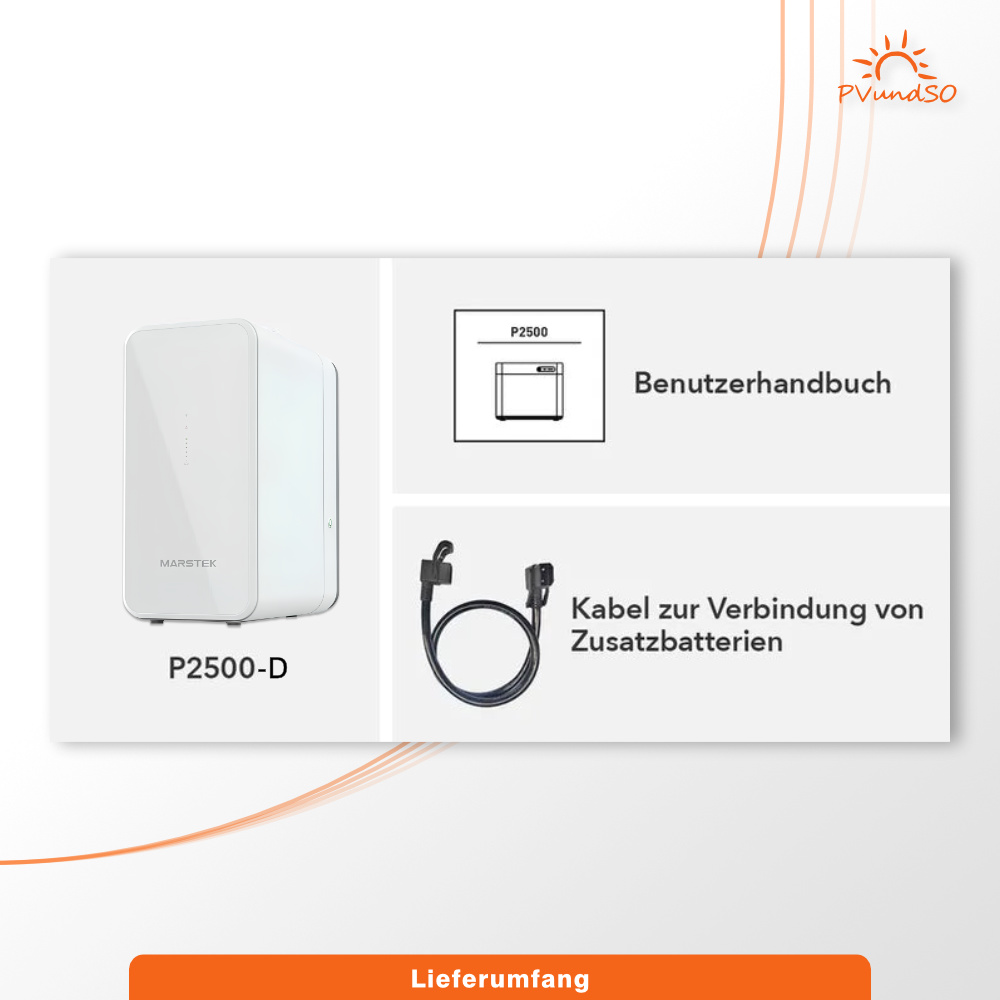Achtung: Es handelt sich beim P2500-D um einen Zusatzspeicher, der nur in Verbindung mit dem Marstek Speicher B2500-D funktioniert.