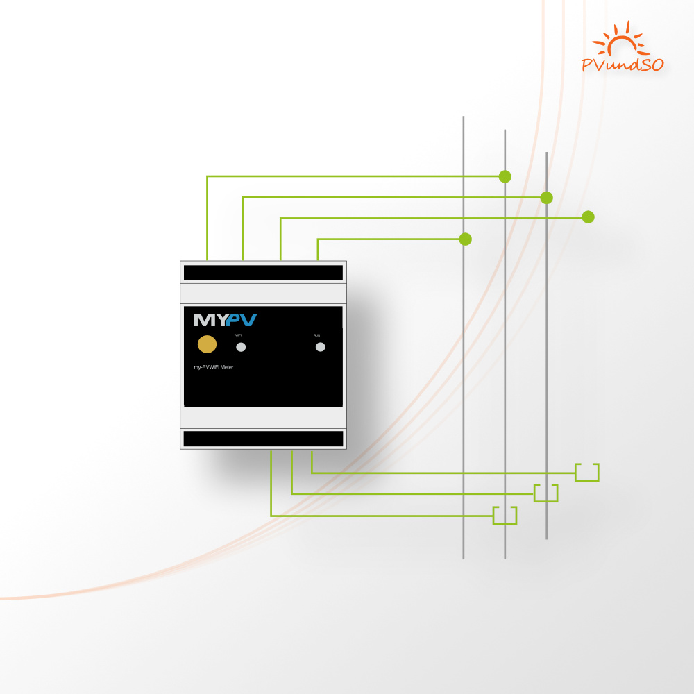 Der my-PV WiFi Meter maximiert den Eigenverbrauch Ihrer PV-Anlage auf die wohl einfachste Weise. Er analysiert die Energieflüsse der PV-Anlage und übermittelt die Informationen überschüssiger Leistungen an den Photovoltaik Power-Manager AC•THOR, AC•THOR 9s oder die AC ELWA 2.