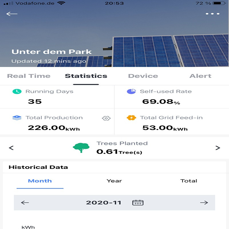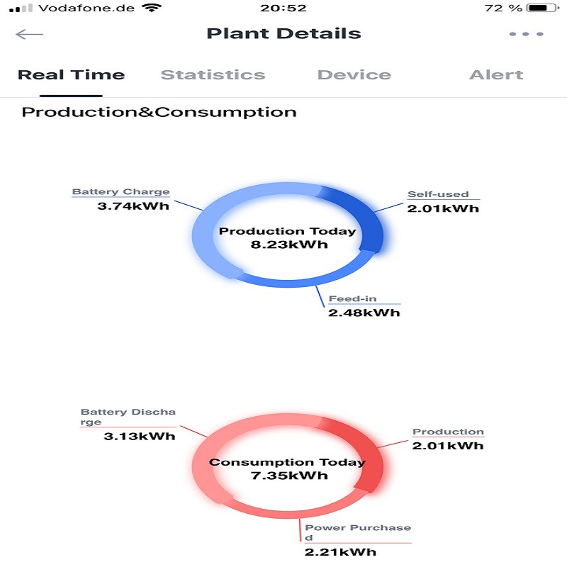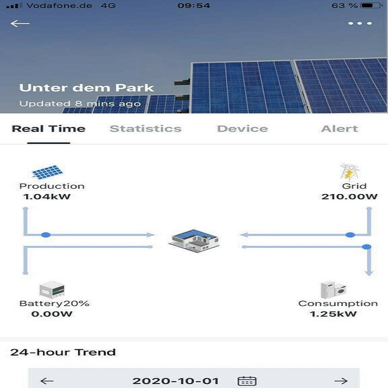 ► Über die APP lässt sich auch von Unterwegs die Funktion des Gerätes und die Leistung der Photovoltaikanlage komfortabel überwachen.
