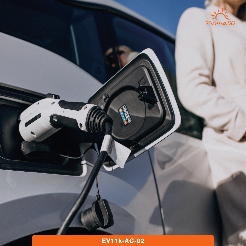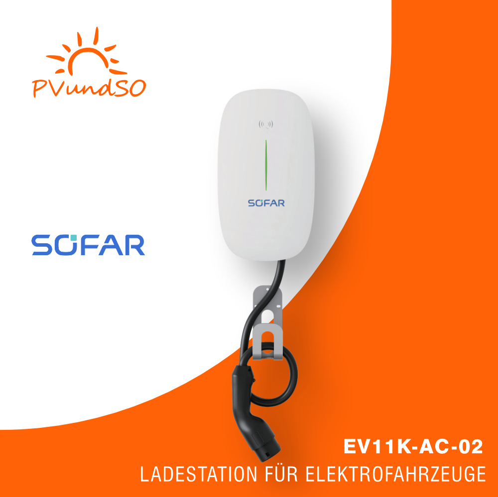 Der EV11k-AC-02 von Sofar Solar ist eine dreiphasige AC-Wallbox mit einer Ladeleistung von 11 kW, die für das sichere und effiziente Laden von Elektrofahrzeugen entwickelt wurde.
