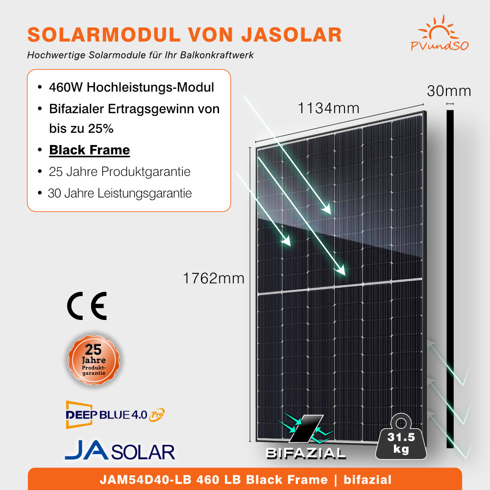 - Nennleistung: 460W für maximale Stromerzeugung