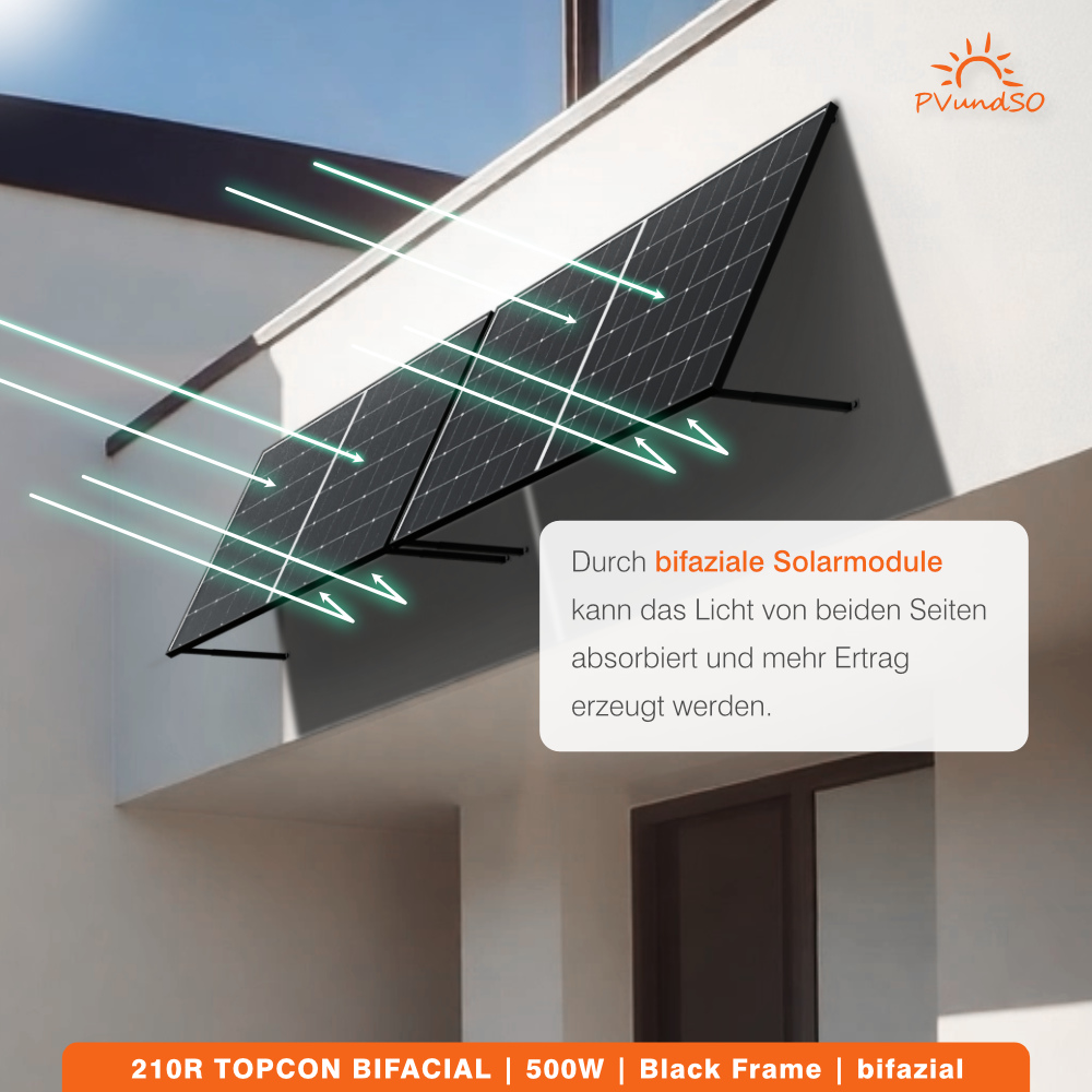 Bei Lieferungen in Nicht-EU-Länder können zusätzliche Zölle, Steuern und Gebühren anfallen.Solarmodul 500W Black Frame bifazial – SUNPRO POWER 210R TOPCON BIFACIAL 500W