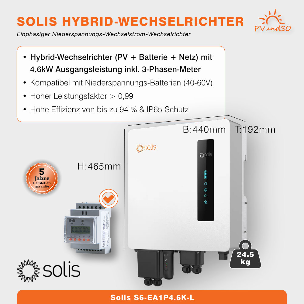 Solis S6-EA1P4.6K-L | AC-gekoppelter Niedervolt Batterie-Wechselrichter 1PH 4.6 kW (inkl. 3PH Meter)