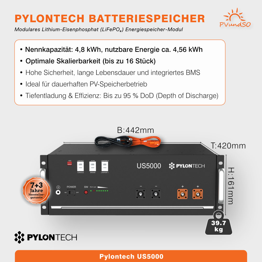 - 1x Pylontech US5000 4.8kWh Li-Ion Batterie 48V