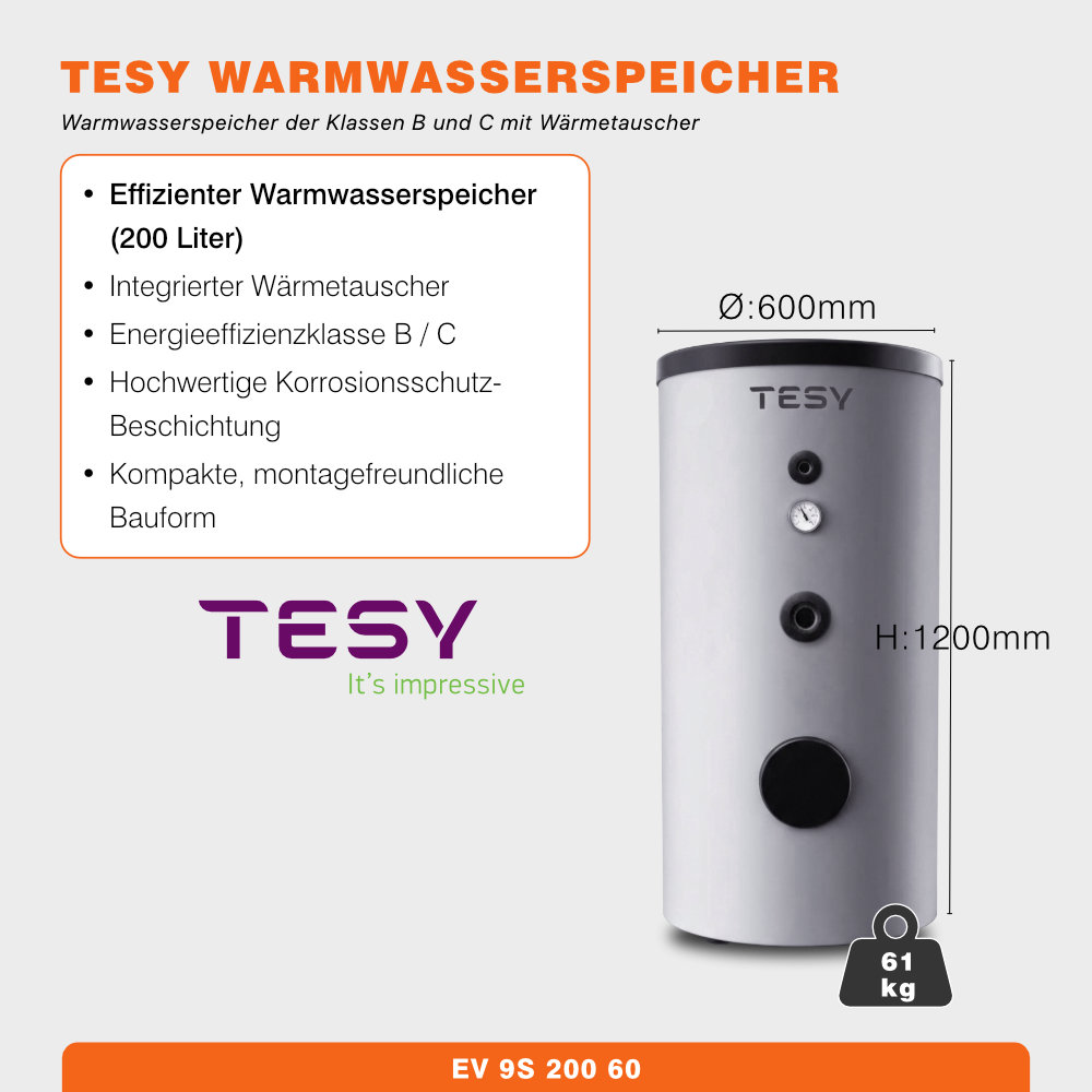 TESY 200L Warmwasserspeicher EV 9S 200 60